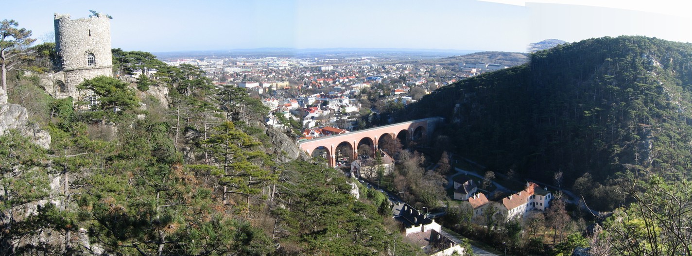 Blick auf Mödling mit dem Aquädukt der I. Wiener Hochquellewasserleitung