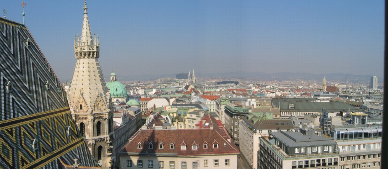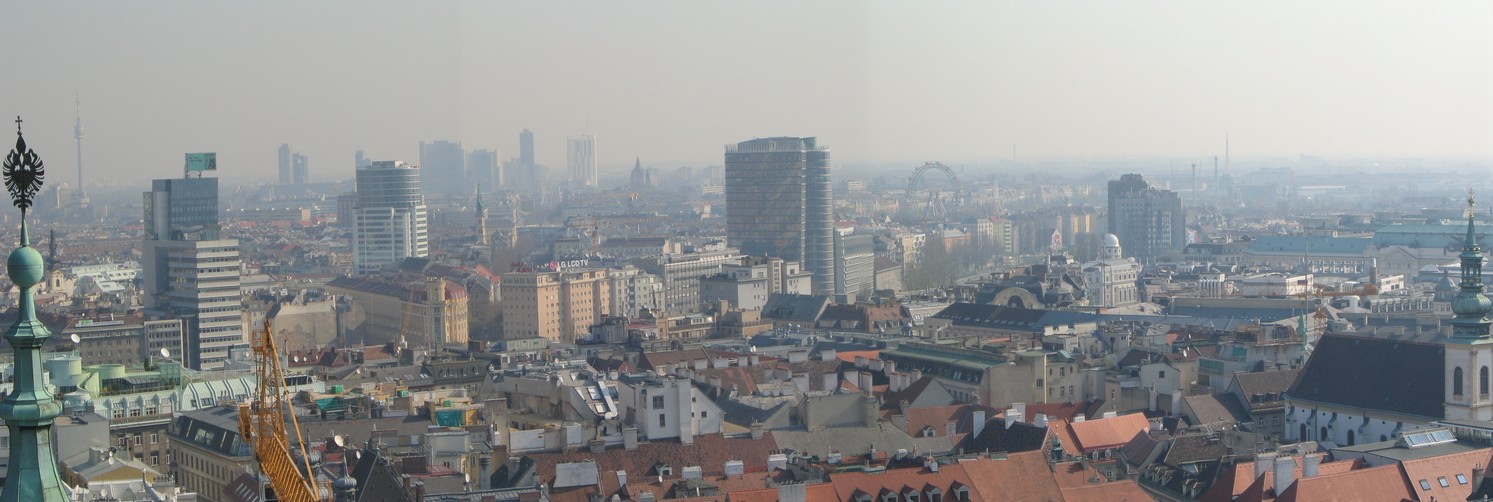 Blick vom Stephansdom auf die Stadt Richtung Osten mit dem Riesenrad